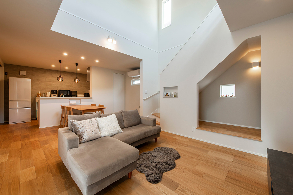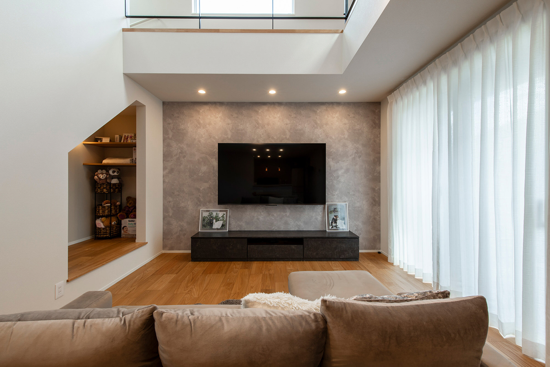 「リビングは、とにかく広くしたかったんです。一般的に見かけるリビング横の和室は要らないので、その分リビングを広くしてくださいと要望しました」とご主人。