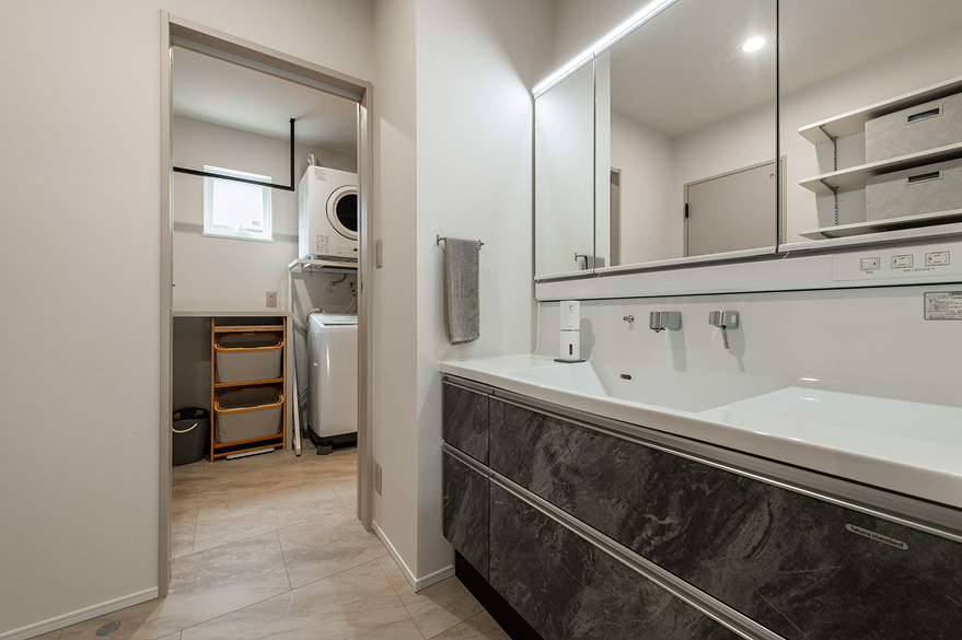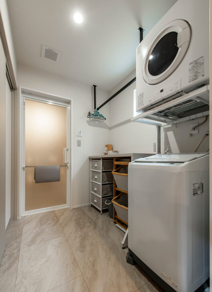 洗濯動線が整った間取りや新しいキッチンは、家事がとてもラクになり、料理も楽しいとのこと。