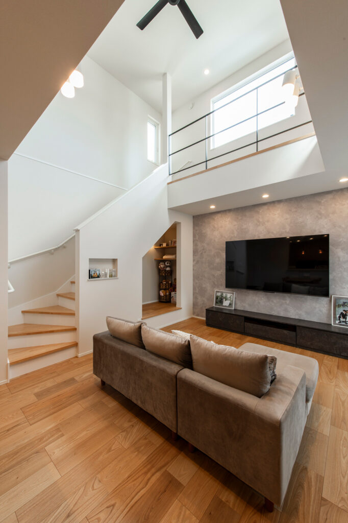 家づくりではいろいろこだわりがあったというW様ご夫妻。中でも絶対に叶えたかったのは、広いリビングと吹き抜けだったそう。